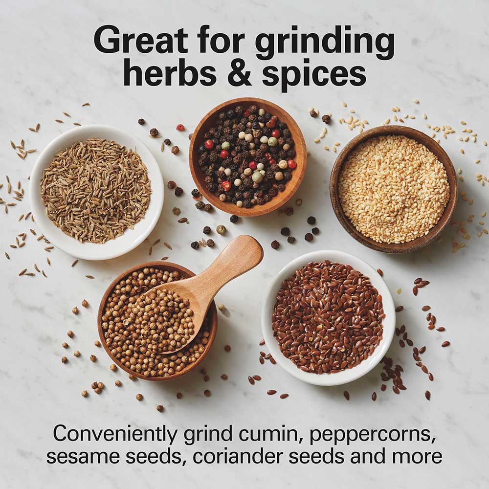 - Durable Stainless Steel Construction: Features a robust stainless steel grinding bowl and blades for efficient grinding of coffee beans, herbs, spices, and seeds.