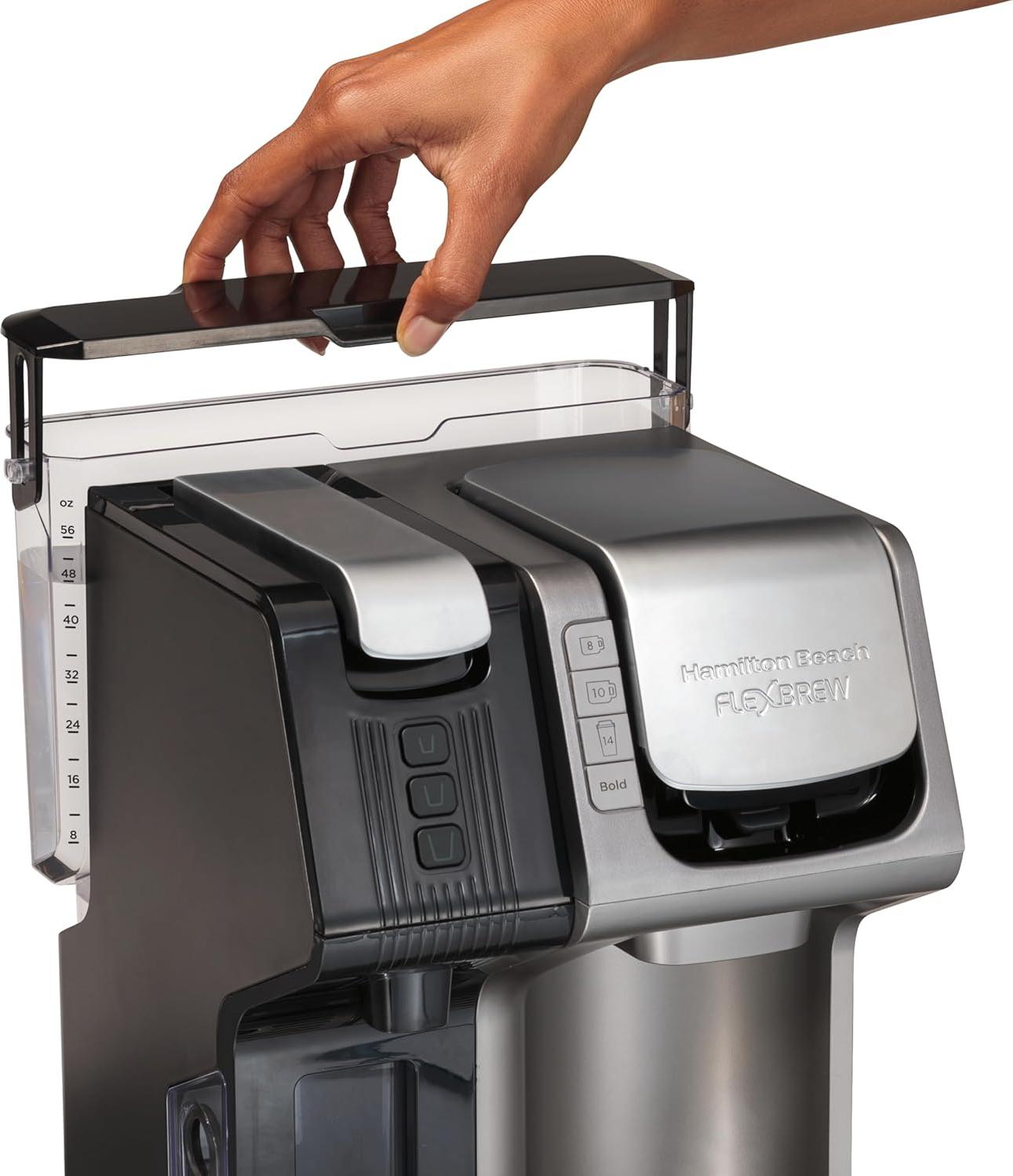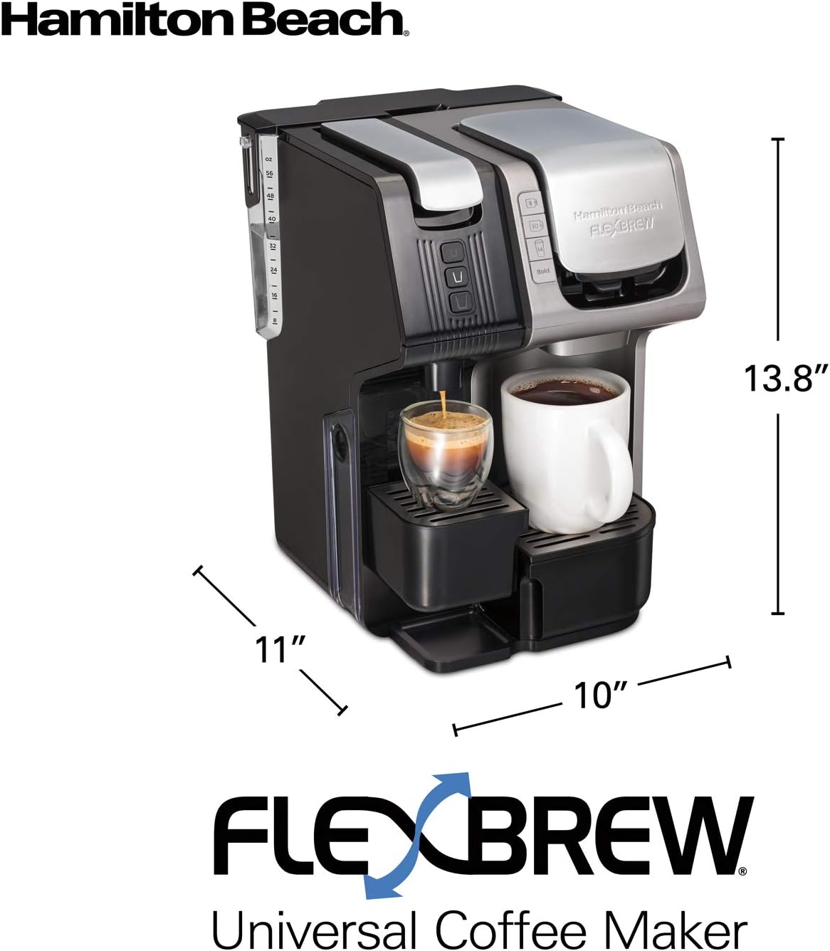 The Hamilton Beach FlexBrew® Universal Trio 2-Way Coffee Maker offers unparalleled versatility, catering to diverse coffee preferences within a single, compact appliance. Whether you're in the mood for a rich espresso, a quick single-serve, or a full pot of coffee, this machine has you covered.