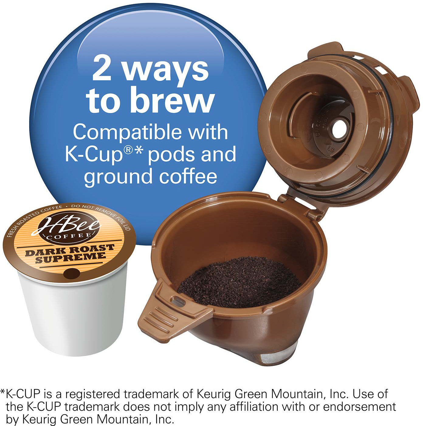 - 2 Ways to Brew: Compatible with both K-Cup®* pods and ground coffee, offering the flexibility to brew your favorite type of coffee. Brew up to 10 oz. with a pod or up to 14 oz. with coffee grounds.
