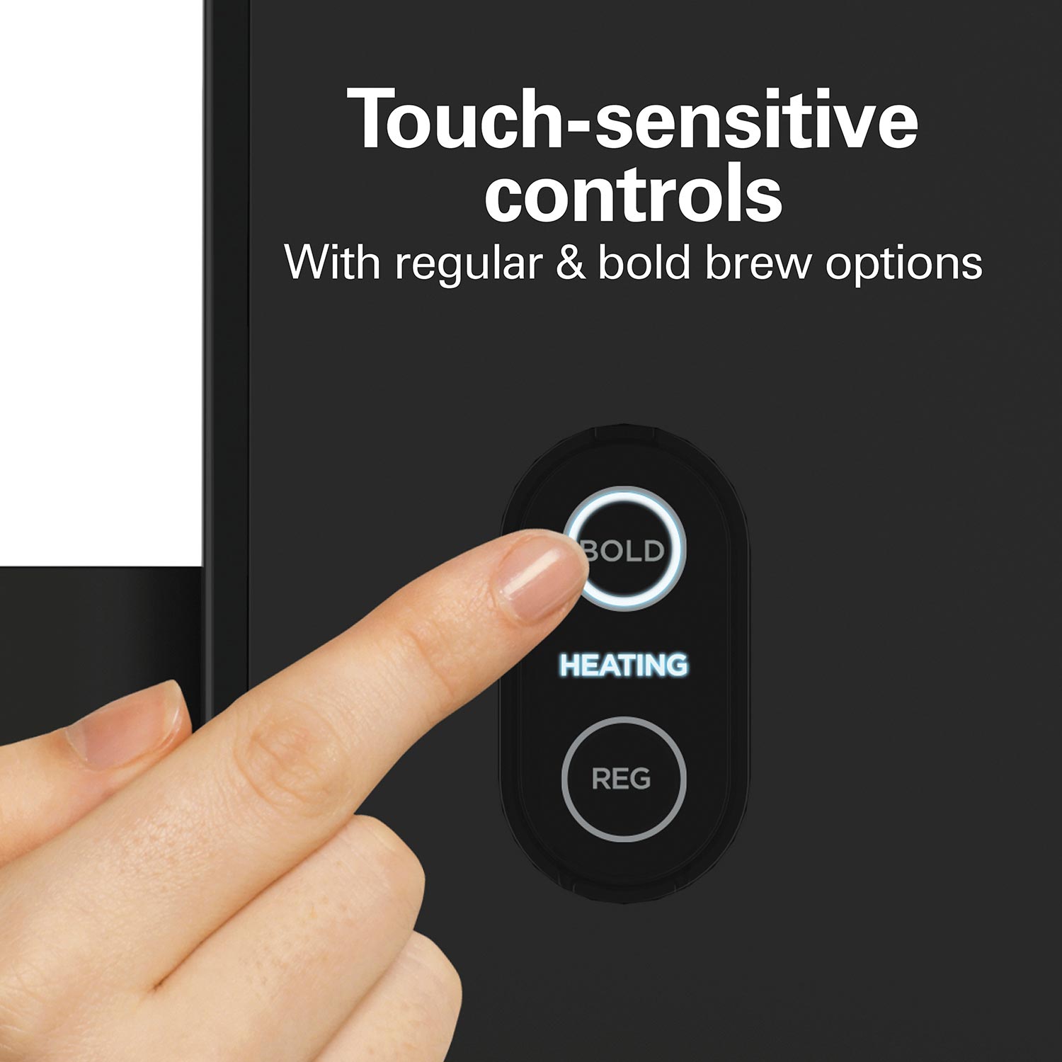 - Touch-Sensitive Controls: Easy-to-use capacitive touch controls with options for regular and bold brew strengths.
