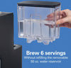 • Removable 50 oz. Water Reservoir: Brew up to 6 servings without refilling, thanks to the large removable water reservoir that simplifies the brewing process.
