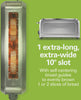 One extra-long, extra-wide 10" slot: Accommodates 2 regular slices of bread or 1 long slice of artisan bread without cutting or flipping.