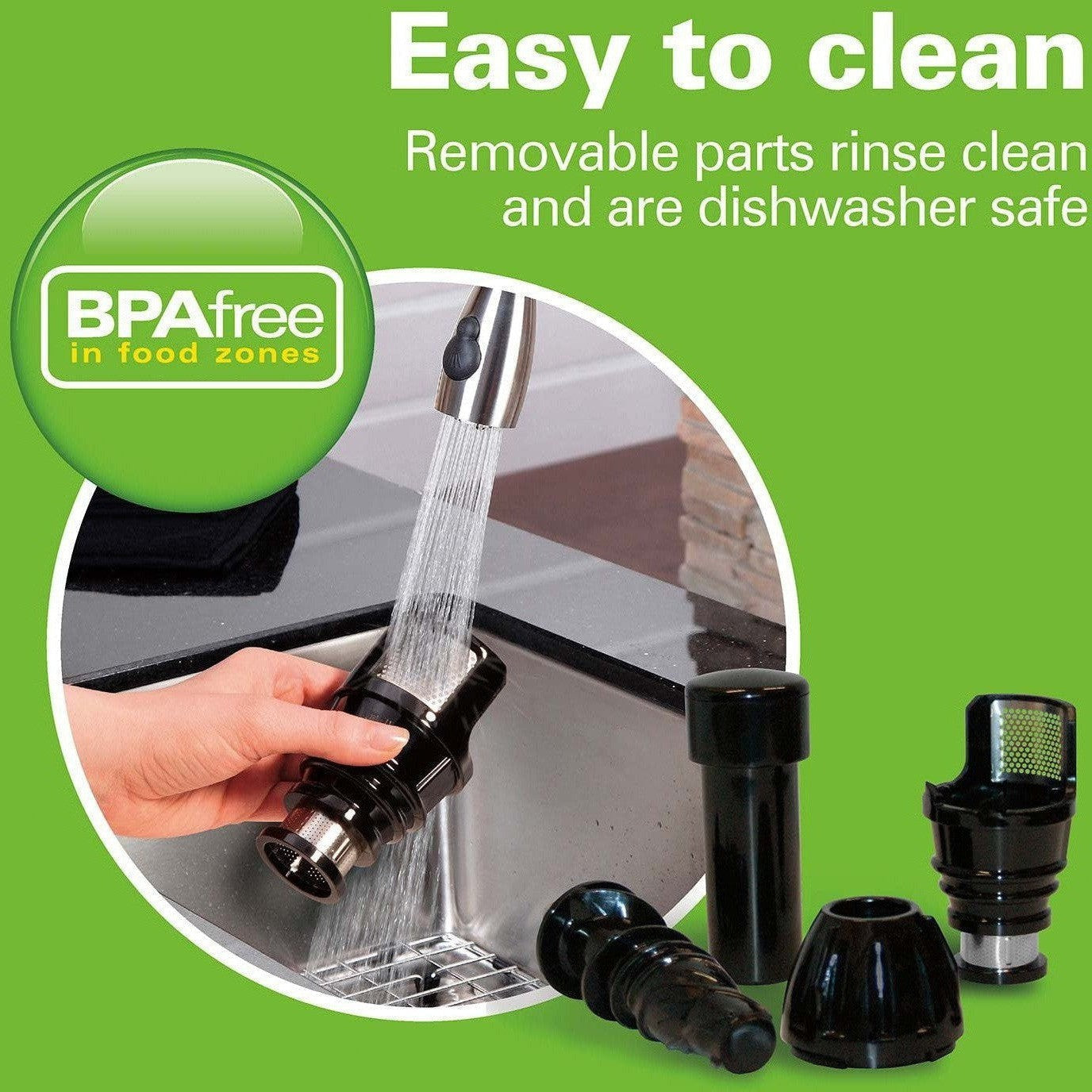 Maximum Juice Yield, Minimal Noise: Tritan™ auger with 150 watt motor extracts juice quietly and efficiently.