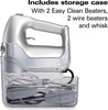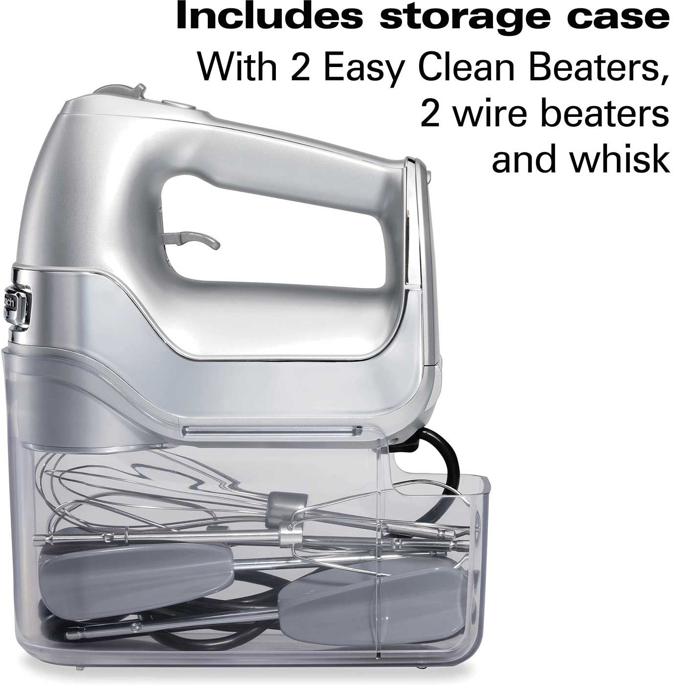 Includes Storage Case: Comes with a convenient storage case to keep all accessories organized, including 2 Easy Clean beaters, 2 stainless steel wire beaters, and a whisk.