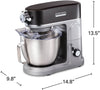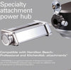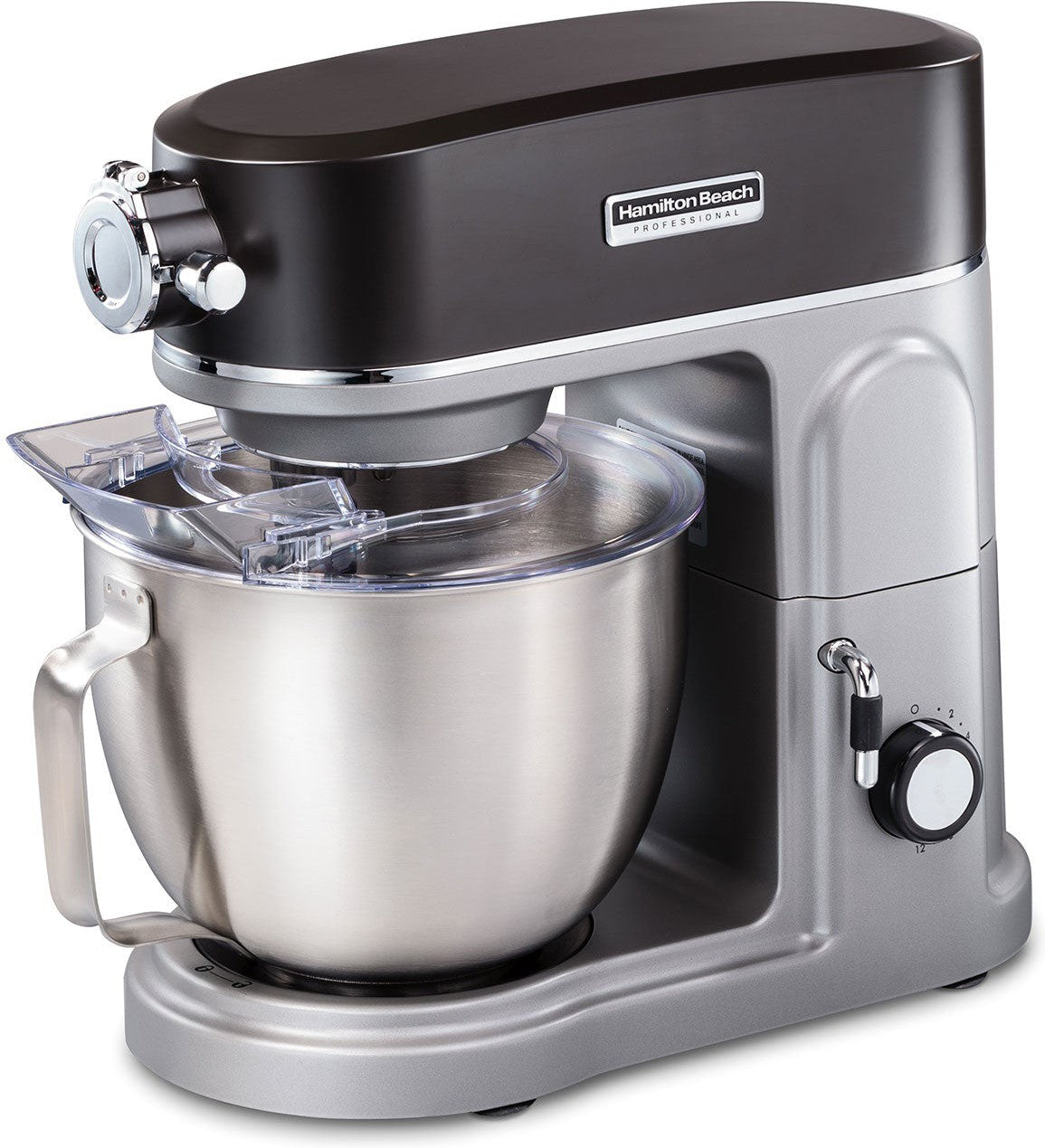 If there's one appliance every accomplished home chef needs in their kitchen, it's a professional-quality stand mixer. The Hamilton Beach Professional All-Metal Stand Mixer helps dedicated cooks like you expertly create everything from cookie dough and cake batter to whipped cream and bread dough. It's built with a powerful 450-watt motor that handles every mixing task. Twelve mixing speeds take you from slowly folding ingredients all the way up to beating and whipping at top speed, and the planetary mixing action provides complete bowl coverage. The quick-release head tilts up for easy access to the 5 quart/4.7 liter bowl, and the splash/pour shield fits atop the bowl to help prevent splatters. In addition to the flat beater, whisk, and spiral dough hook, the Hamilton Beach All-Metal Stand Mixer comes equipped with a power hub, so you can purchase add-on attachments for rolling pasta, grinding meat, slicing, and shredding. If you love baking, you'll appreciate having the Hamilton Beach Professional All-Metal Stand Mixer in your kitchen. Its performance is backed by a 5-year limited warranty, so you can be confident that it will stand the test of time.