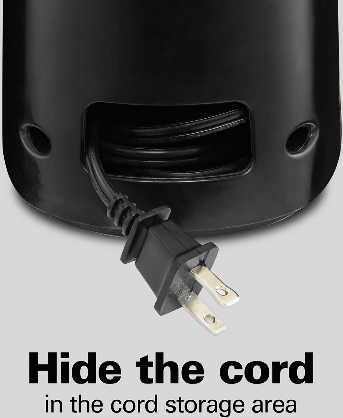 - Cord Storage: Keeps cord neatly stored away to reduce countertop clutter.