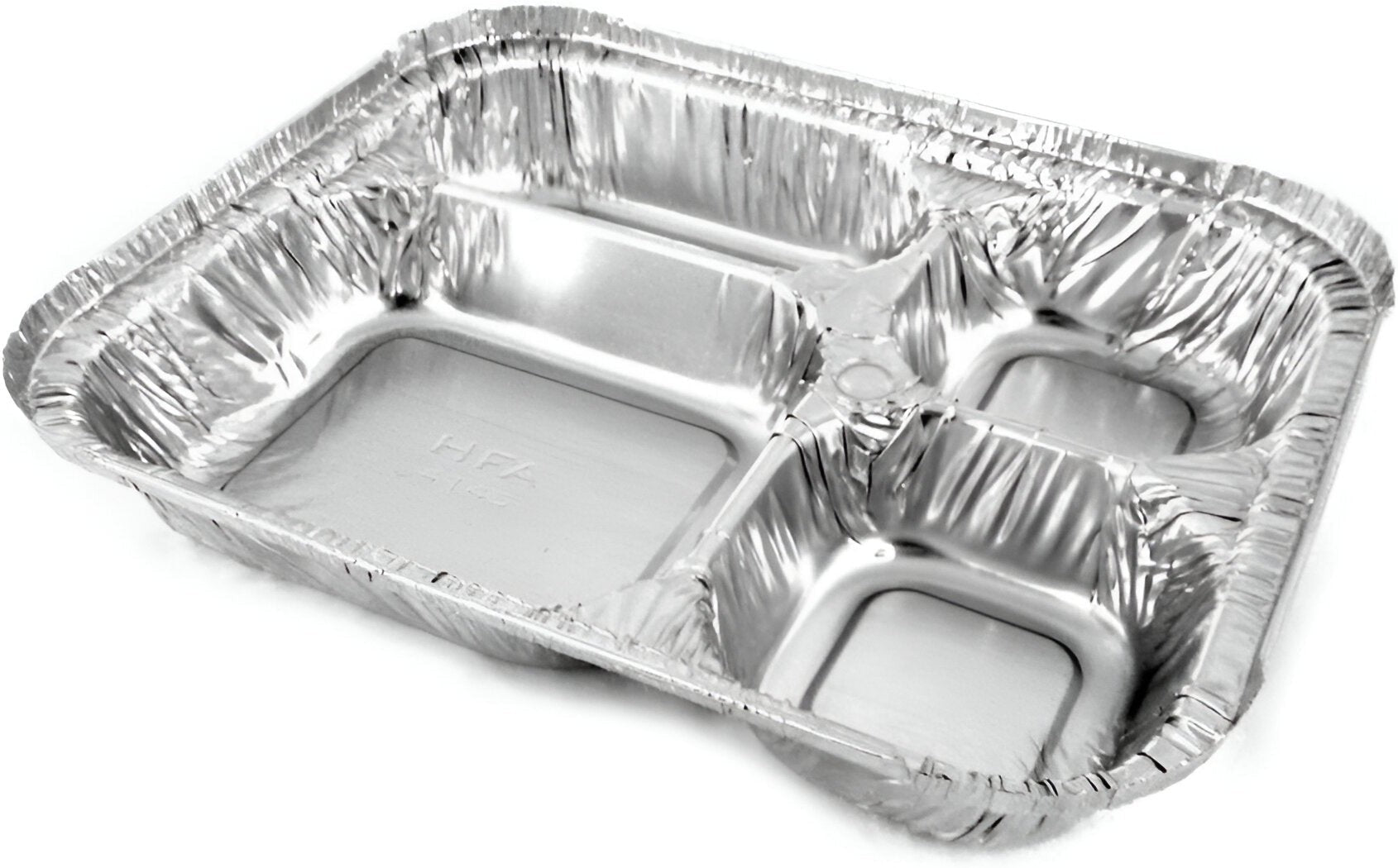 HFA Corporation Oblong 4 Compartment Foil Tray with Lid – a practical and efficient solution for culinary professionals, catering services, and home cooks. Each case includes 250 trays with lids, providing a reliable option for a variety of culinary applications. Elevate your food service and meal preparation with the HFA Corporation Oblong 4 Compartment Foil Tray with Lid. Order your case today and experience the convenience and versatility these trays bring to your kitchen.