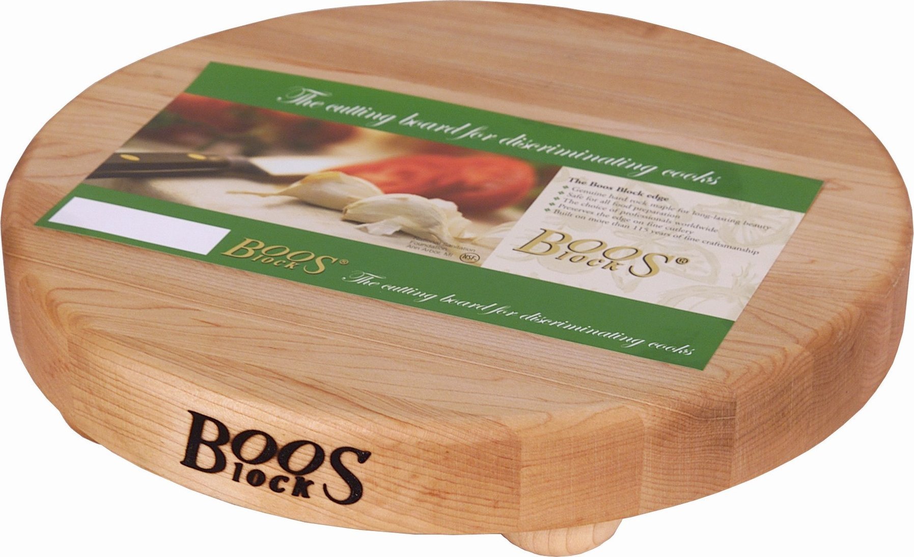 John Boos - 12" x 1.5" Round Maple Cutting Board with Wood Bun Feet - B12R