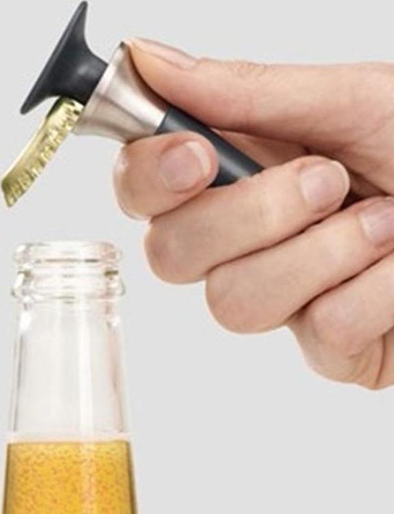 Opens Bottles Any-Way - This handy bottle opener has a unique 360° stainless steel opening edge, that means you can prise off bottle caps from any angle!