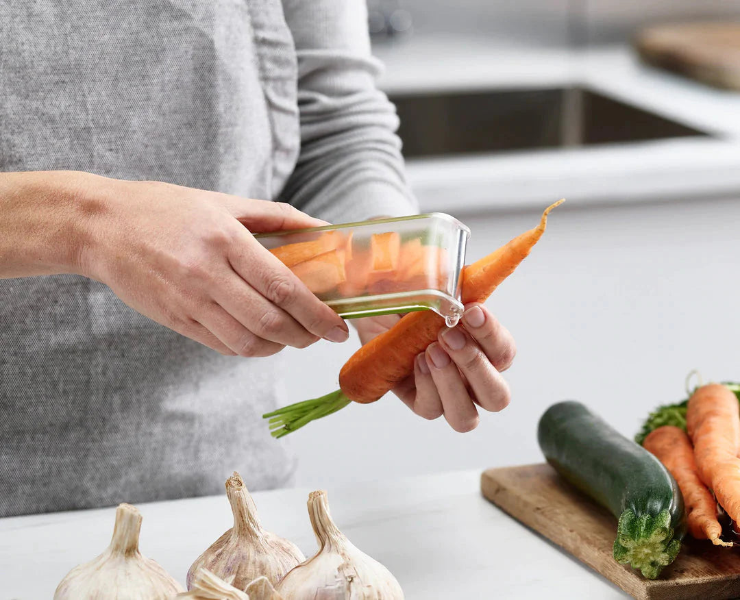 This handy peeler helps keep peeling mess to a minimum as the waste is collected inside the handle as you peel.