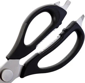 The Joyce Chen Multi-Use Kitchen Shears are a must have for anyone who loves to cook at home. These multi-purpose kitchen shears feature 3.5-inch serrated stainless steel blades that let you precisely cut vegetables and meats without having to reach for a knife. The serrated teeth between the rubber handles make it easy to pop open bottles and crack nuts. And when it's time to clean up, the blades separate for a thorough and easy cleaning process. These stainless steel kitchen shears are made with high quality materials for durability and longevity. The Joyce Chen Multi-Use Kitchen Shears are perfect for cutting herbs, poultry, and vegetables, making them a must-have addition to your kitchen.