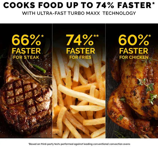 - Turbo MAXX® Technology: Utilizes superheated air to cook food faster than traditional ovens, reducing cooking time and energy consumption.