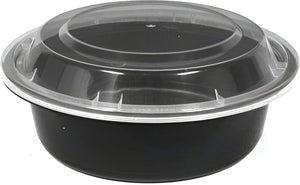 Kari-Out - 16 Oz Medium Round Black Plastic Containers with Lid Combo, Pack of 150 - MT 0610B