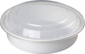 Kari-Out - 24 Oz Medium Round White Plastic Containers with Lid Combo, Pack of 150 - MT1710W