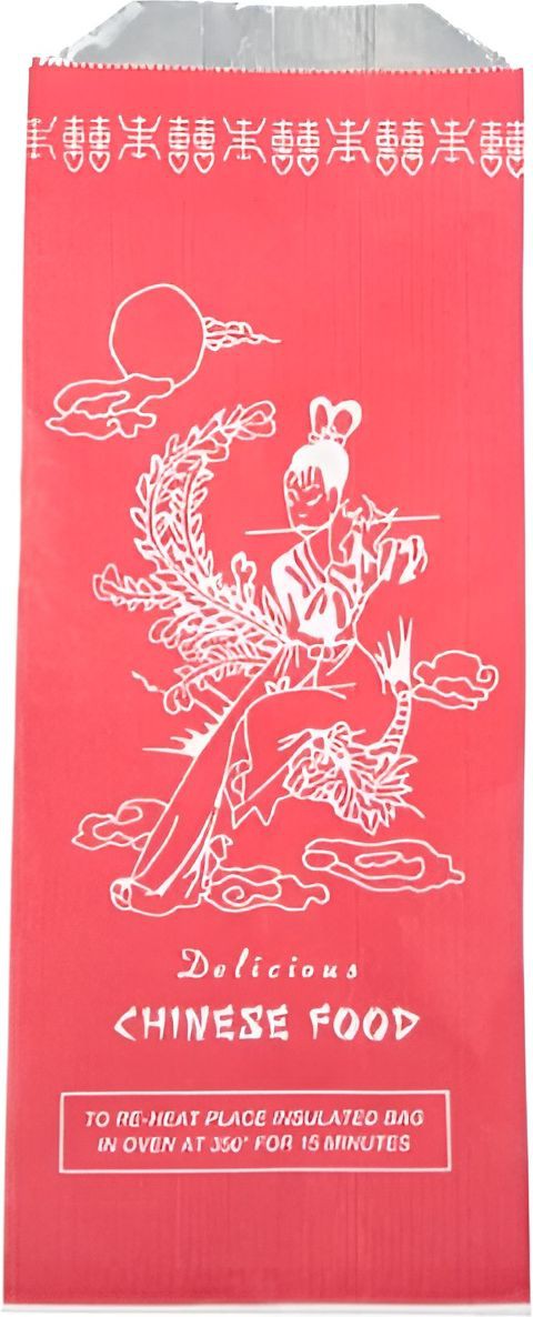 - Chinese Print Design: Featuring a distinctive Chinese print design, these foil bags add a touch of style and uniqueness to the presentation of your culinary creations.