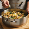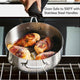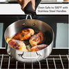 STOVETOP TO OVEN: Induction compatible stainless steel saute pan is broiler and oven safe to 500°F without lid; oven safe to 350°F with lid.