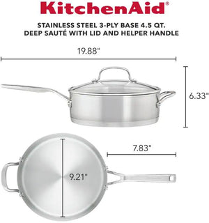 KitchenAid - 4.5 QT 3-Ply Brushed Stainless Steel Saute Pan - 71027