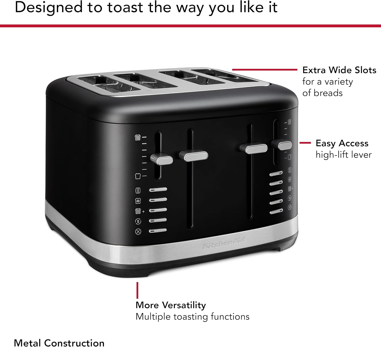 - Durable Construction: Built with high-quality materials, the KitchenAid 4 Slice Toaster is designed for durability and long-lasting performance. Its robust construction ensures that it can handle daily use while maintaining its sleek appearance, providing you with reliable toasting for years to come.