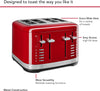 - Sophisticated Empire Red Design: The KitchenAid 4 Slice Toaster features a stunning Empire Red finish that adds a touch of sophistication to your kitchen countertop. Its contemporary design fits seamlessly into any kitchen decor, from modern to traditional, making it a stylish addition to your home.