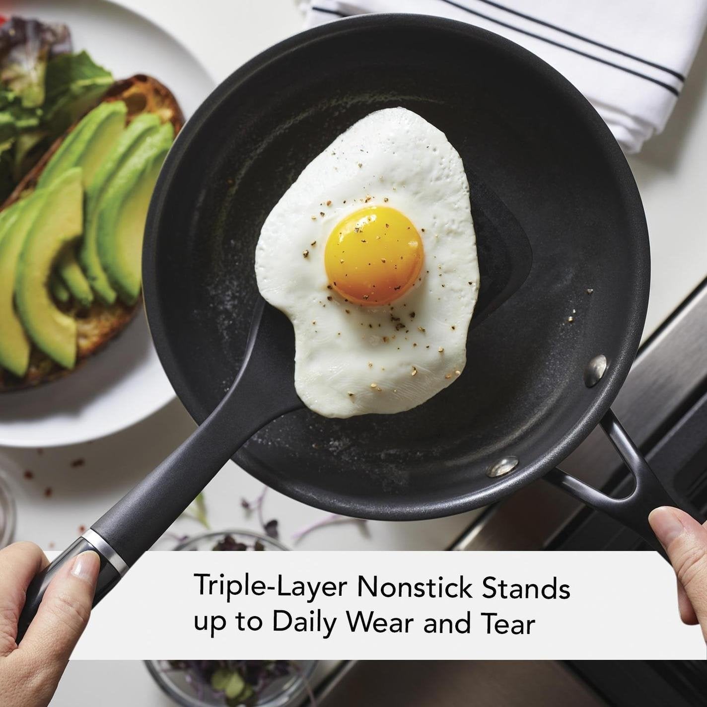 PREMIUM FOOD RELEASE: KitchenAid stainless steel pan is finished with triple layer, PFOA-free nonstick to stand up to daily wear and tear.