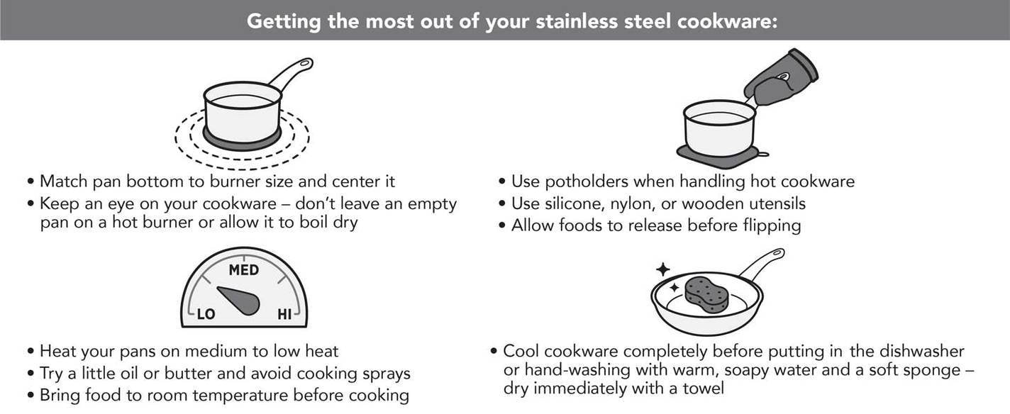 STOVETOP TO OVEN: Induction compatible stainless steel cookware with layered construction is broiler safe and oven safe to 500°F for adaptability to a wide range of creative cooking techniques.