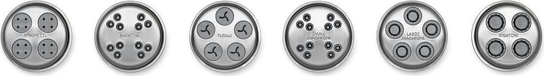 Fresh spaghetti, bucatini, rigatoni, fusilli, large macaroni or small macaroni with one attachment. Simply attach to the hub of your stand mixer, choose one of the 6 interchangeable pasta plates and enjoy fresh pasta in minutes. Storage case: Helps you keep all of the pasta plates and accessories neat and organized when not in use.