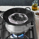 No more pot watching with the KOCHBLUME Spill Stopper! It acts as a heavy silicone lid preventing pasta, soups, and other dishes from foaming or spilling all over your stove. Can also act as a microwave cover and steamer!
