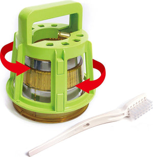 The efficient, low-speed masticating technology presses and extracts juice instead of shredding like high-speed juicers. The juicing screw masticates fruits and vegetables, breaking down the cellular structure and releasing the nutrients and minerals. This technology minimizes oxidation and preserves nutrients and healthy enzymes, producing a fresh, all-natural juice.