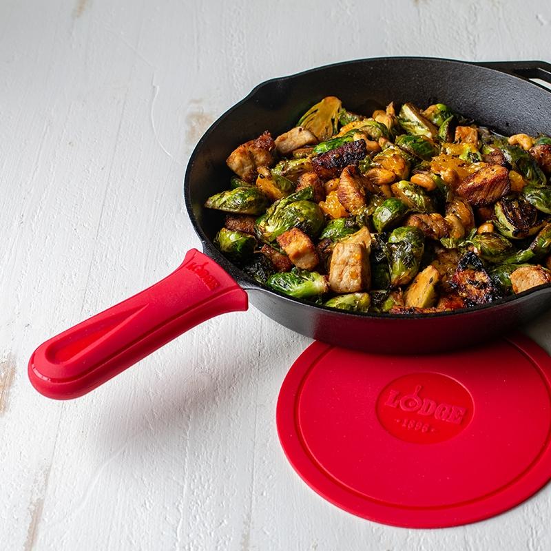 High temperature cooking? Don't sweat it. A great piece of cast iron cookware gets hot, but this colorful silicone hot handle holder keeps your hands safe up to 550°F.