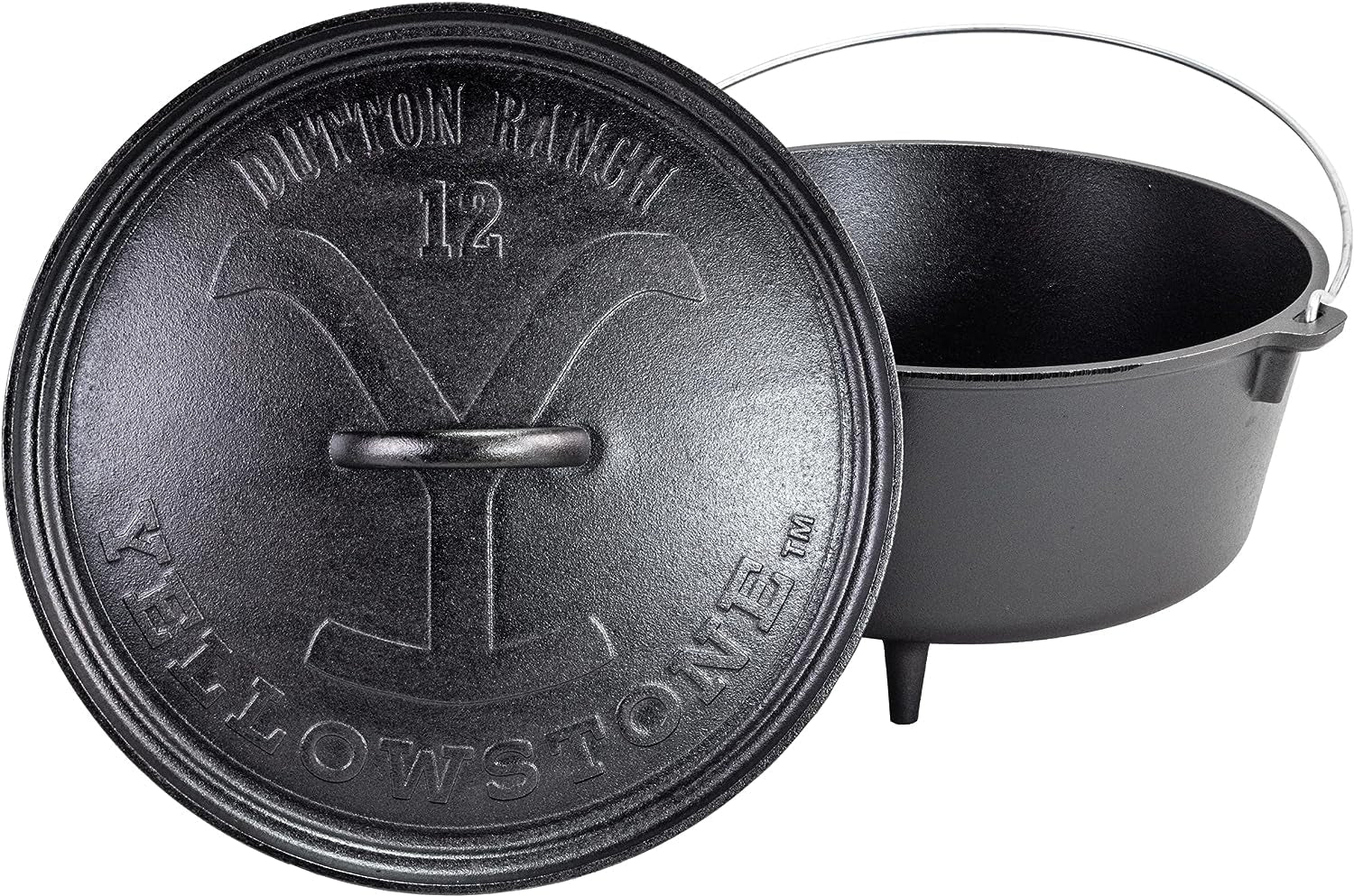 Meet American cookware born for adventure. This special edition Yellowstone deep camp dutch oven represents the best of American grit, told through stories and around the table. The collectible yet functional piece delivers classic camp oven performance, and includes a Yellowstone power y lid that makes it a perfect gift for show fans. The dutch oven features a bail handle and raised feet to keep food over the fire or coals, so you can bring great cooking to the great outdoors. Put American cast iron to work in your home and keep authentically good food in the family.