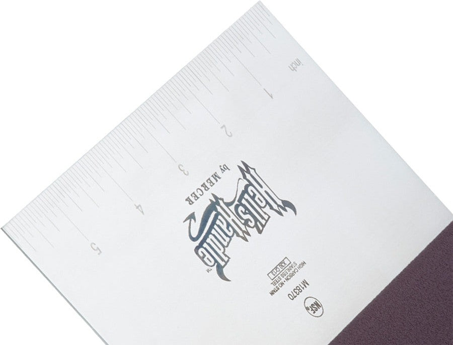 The Mercer - Hell's Handle® Stainless Steel Bench Scraper with Red Handle, a revolutionary tool designed to elevate your culinary experience. Crafted with innovation at its core, this bench scraper is engineered to withstand high heat environments, boasting a handle that absorbs 50% less heat, ensuring it stays cool to the touch even during intense cooking sessions. The precision-ground stainless steel blade is meticulously crafted to offer the perfect balance of flexibility and stiffness, making it ideal for various culinary tasks. Whether you're scraping dough, chopping ingredients, or cleaning surfaces, this blade delivers unparalleled performance. Designed with ergonomics in mind, the handle features a dual-textured finish, providing extra grip and slip resistance for maximum control and comfort. Additionally, measurements along the blade edge serve as a convenient reference tool, streamlining your cooking process. Furthermore, the sanitary sealed handle design ensures hygiene is always maintained, making it a reliable companion in any kitchen environment. Upgrade your culinary arsenal with the Mercer - Hell's Handle® Stainless Steel Bench Scraper and experience unmatched quality and performance with every use.
