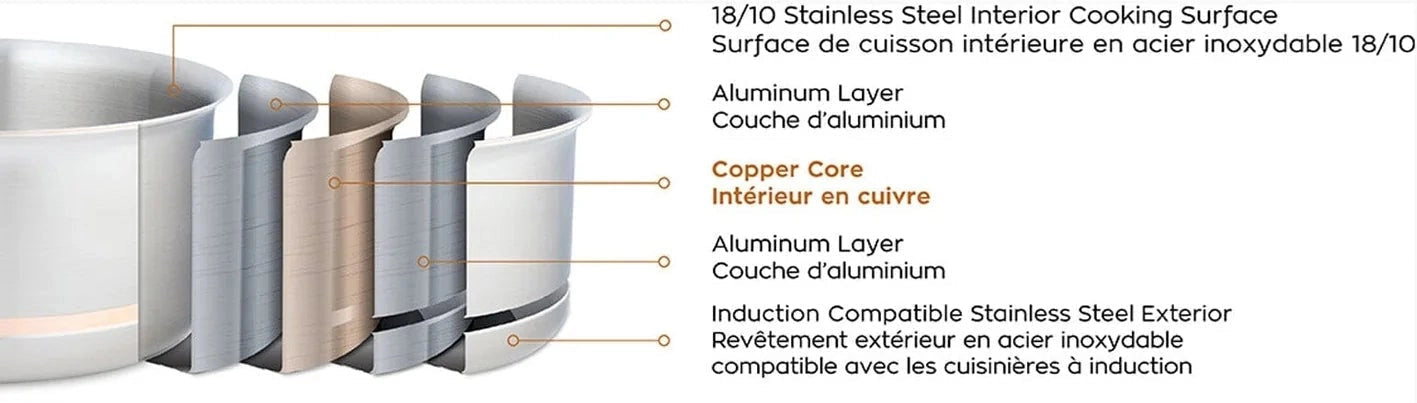 Choose the Meyer 1.6L CopperClad 5-Ply Stainless Steel Saucepan with Lid and elevate your culinary prowess to new heights. By investing in this superior cookware piece, you not only gain exceptional performance but also support hardworking Canadians. Embrace the quality and craftsmanship of a brand made for Canadians, by Canadians, and take your cooking experience to the next level.