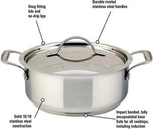 Confederation is Meyer’s newest line of high quality cookware proudly manufactured in Canada. Made from18/10 stainless steel, and featuring an encapsulated bottom for efficient heat conduction that is safe for all cook tops of modern kitchens, including induction. Durable, secure riveted handles, no-drip lips, precision fitting lids, oven and dishwasher safe, the Confederation line is built to last and we stand behind it with our exceptional Lifetime Warranty. Like a saute pan, but with two handles for easy lifting, this versatile pan is ideal for making pan sauces, sauteing vegetables, and quick everyday dishes. Oven safe to 500˚F.