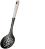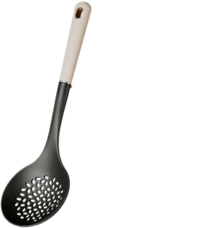 Introducing the Meyer Nylon Skimmer, a versatile and practical tool for your kitchen. Designed with a nylon tool head boosted with fiberglass, this skimmer is built to withstand high temperatures up to 225°C/437°F, making it ideal for various cooking tasks. The hangable handle of this skimmer allows you to conveniently store it and save valuable counter space in your kitchen. With its unique design, you can easily hang it within reach, ensuring quick access whenever you need it. One standout feature of our utensils is the stainless steel resting feature. The skimmer is designed with a special lip that allows it to sit securely on the edge of a pot or pan, preventing it from falling inside. This practical feature adds convenience to your cooking process, keeping your countertops clean and utensils easily accessible.
