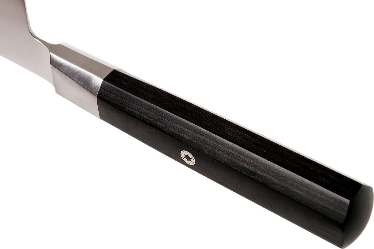 The blade is manufactured of twice ice-hardened FC61 steel, which is characterized by its high degree of hardness and the fact that it can withstand a great deal of strain. The Katana-edge cut is reminiscent of the blades of Japanese swords and considered a visible sign of masterful knife craftsmanship. With its elegant octagonally-formed Pakka wood handle and bolster, MIYABI 4000FC is not only a stylish Japanese knife, it also lies safely and comfortably in the hand. Here, the impregnated, dimensionally-stable Pakka wooden handle is also refined by a mosaic pin. ZWILLING manufactures all MIYABI knives at its own production site in Seki, Japan. Here German engineering skills from Solingen and finest East-Asian craftsmanship come together.
