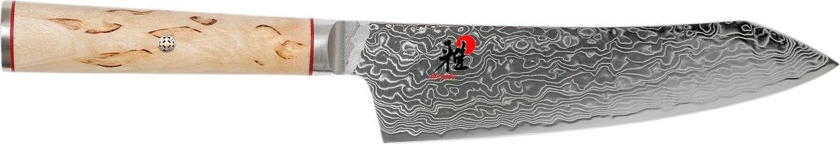 For fans of Japanese cuisine, the MIYABI 5000MCD series is a feast for the eyes. The knife's handle is made from Masur birch to give each knife a unique wood-grain pattern. An end cap and subtly styled mosaic pin complete the knife's elegant look. The handle is D-shaped to give the knife perfect balance and control for effortless and precision cutting.