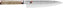 The blade has beautiful Damask patterning and a hard core of MicroCarbide MC63 powder steel enclosed within 100 layers of two different steels. The CRYODUR blade is ice-hardened at -196 degrees Celsius to achieve a hardness rating of around 63 Rockwell that keeps the blade sharp and flexible. The blade also undergoes manual Honbazuke honing between two rotating stones to achieve its extreme sharpness, and is then polished using a leather wheel. This Miyabi knife has both beauty and functionality.