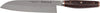 The handle is made of tough dark cocobolo pakka wood. A goose neck curved handle allows easy working. There is also an individual counterbalance within the handle, so you can cut easily without exerting much force. The Santoku knife from the MIYABI 6000MCT range ensures fast, clean, precise cutting. This product delivers high quality with Japanese design and you will use it often.