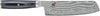 The Nakiri knife is used as a general purpose vegetable knife for preparing fruits and vegetables. It has a blade core of fine carbide steel for very good initial sharpness and cutting edge retention. This FC61 core is embedded in 48 layers of steel which make up the unique Damascus-design pattern on the blade.
