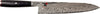 The gyutoh is the chef’s knife of the Japanese kitchen, used as a general purpose knife for preparing larger cuts of meat and vegetables. It has a blade core of fine carbide steel for very good initial sharpness and cutting edge retention. This FC61 core is embedded in 48 layers of steel which make up the unique Damascus-design pattern on the blade.