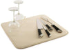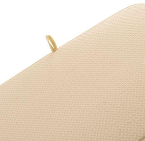 The perfect solution for every kitchen countertop! Ideal to replace dish towels on the counter when handwashing pots, pans, dishes, glassware and cutlery! This unique design holds 4 times its weight in water by combining a thin layer of foam between two high quality, extremely absorbent, durable, microfiber layers. Dries faster than ordinary dish towels. Provides cushion for delicate dishes and stemware. Protects your counter from scratches and scuffs when placed under small appliances. Includes a sewn in hangtab to the side of the mat, to hang up mat to dry. Can also be folded for easy storage.