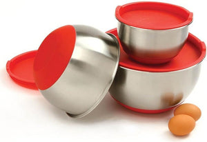Norpro - 3 Piece Stainless Steel Grip Bowls w/Lids - 10446