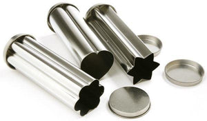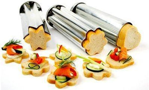 These cleverly designed bread tubes bake three fancy loaves. Shapes included are flower, heart and star. Ideal for catering parties, buffets or weddings. Use with a recipe from scratch, frozen bread dough or bread machine dough. Simply fill each of the tubes with your bread dough, let it rise, cap it and bake! Thinly sliced, these loaves are perfect for tiny tea sandwiches, sophisticated crostini, melba toast or buffet hors d'oeuvres. Recipe and instructions included. Hand wash and dry thoroughly. Do not put in the dishwasher.