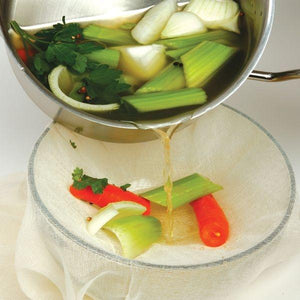 High quality food grade cheesecloth with dense cotton weave. 100% natural, unbleached cotton. Excellent for basting, stuffing poultry, straining stocks and broth, canning, wrapping cheese and wine making. Also ideal for straining custards, making tofu and ghee, and thickening yogurt. Create bags of herbs and seasonings to use for soups and other dishes, or make homemade teabags using loose tea and home grown herbs. Also great for furniture refinishing, waxing, polishing, shrubbery protection and crafts. Washable and reusable.