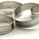 Make your own English muffins or crumpets with these perfect size rings designed to hold soft batter in place while on the griddle or baking. Sits on top of griddle while you pour dough inside. Cook each side for about 5-7 minutes. Flip to cook each side. Holds shape of muffin, hotcake or crumpet until form is secured. Also perfect for making Japanese hotcakes, Scottish pancakes, drop scones and English crumpets. Use as a perfect cookie or pancake cutter, pancake ring, sunny side-up egg ring and even a biscuit/pastry cutter. Use English muffins as a base for freezer ready mini pizzas. Make ahead egg/sausage or egg/ham breakfast sandwiches. Made of stainless steel with rolled edges. Recipe included. Hand washing recommended.