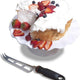 The serrated blade and cut out sections allow the knife to glide through angel food cake gracefully. Works for "sticky" cheese like Chevre and Brie too. The handle has a patented shape, ergonomically designed to fit perfectly for right or left hand use. Oversize handle and finger indents give a great hold without strain and keeps hands clear of the tool's functional surface.