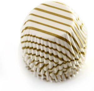 Dress up your cupcakes with these attractive, fluted gold striped paper baking cups! Baking cup liners help keep muffin or cupcake sides nice and soft, and help prevent potential burning. Eliminates the need for greasing pans, saving time and provides easy pan cleanup! Fluted liners pop out of pans with ease and work well with all standard muffin and cupcake pans. Gold stripe pattern is perfect for any occasion! Also great for holding nuts, cookies, party snacks, individual desserts, hot or cold appetizers, candies and chocolate!