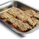 The large rectangular size makes it roomy enough for the largest roasts and hams. The 2" / 5cm depth of the pan makes it perfect for lasagna, casseroles and scalloped potato dishes. Can also be used as a cake or brownie pan. Made of heavy duty stainless steel. Hand washing recommended.