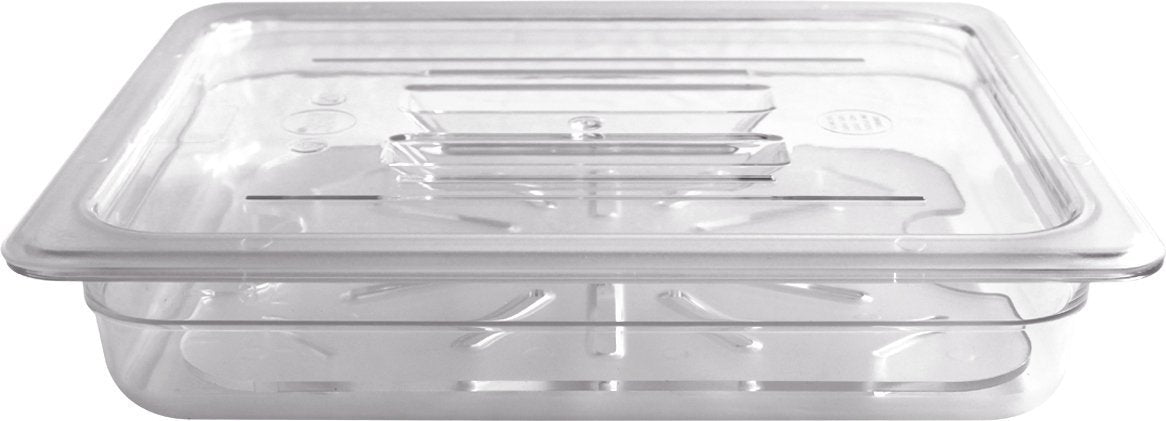 This polycarbonate clear food pan is designed to provide convenience, visibility, and storage for fresh food ingredients. It is made of durable polycarbonate that is able to resist cracks, breaks, and withstand temperatures from -40 to 99 degrees Celsius. It is also designed to resist food oil and acids to extend its longevity.