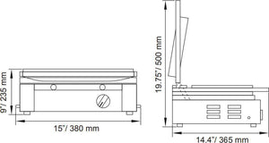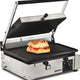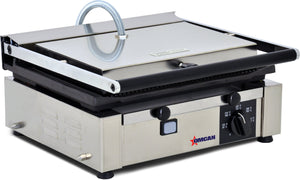 Grill your signature sandwiches to perfection with our great selection of panini grills. These grills are ideal for quesadillas, paninis, hamburgers, focaccia, and pita sandwiches. This unit has a stainless steel body with cast iron grilling surfaces for easy cleaning. The grooved surface on the grills provides grill marks to the meat or sandwich making it more visually appealing for your customers.